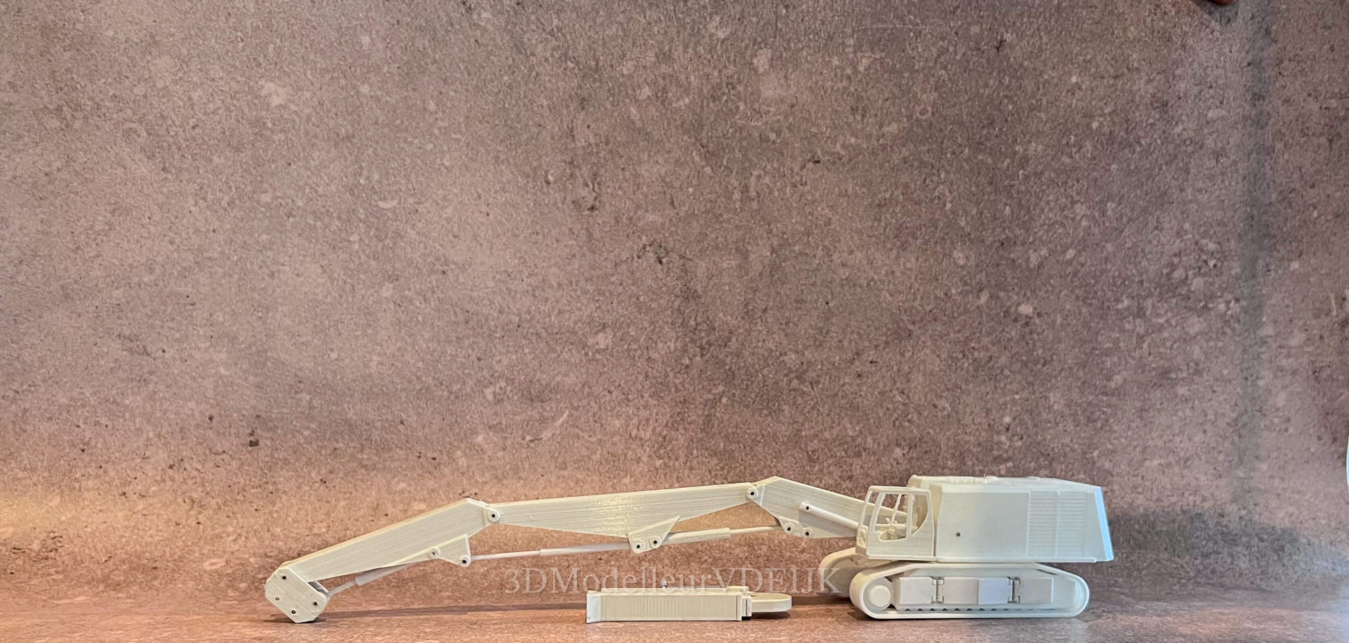 De Damwandkraan van VDEIJK® is een uniek en flexibel model, speciaal ontworpen voor kraanmachinisten in de modelbouw. Dit beweegbare geheel kan volledig naar eigen inzicht gepositioneerd worden, waardoor je het model kunt aanpassen aan je specifieke wensen en project. De kraan wordt geleverd inclusief giekpennen en een in hoogte verstelbare graafmachinecabine voor extra detail en functionaliteit. Geïnspireerd op de 885 van Kandt, biedt dit model zowel realisme als veelzijdigheid.